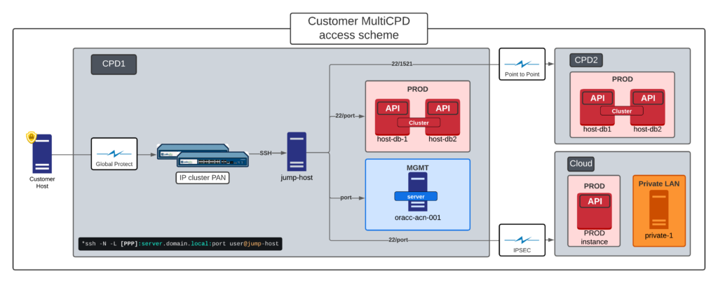The second design provides access for external personnel who manage and maintain outsourced products. These services are offered from two data centers.